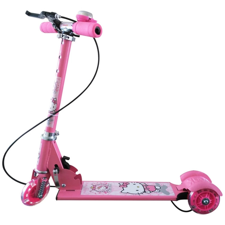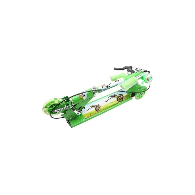 اسکوتر فلزی تاشو طرح دخترانه و پسرانه را با بهترین قیمت خریداری کنید. این اسکوتر از وسط تا خواهد شد و می توانید در طبیعت هم آن را استفاده نمایید و همچنین دارای زنگ و ترمز به صورت دوگانه ست، یعنی هم ترمز دستی دارد و هم ترمز پدالی که با قرار دادن پا روی قسمت گلگیر اسکوتر سرعت آن کاهش پیدا می کند. نکته: چرخ های این محصول چراغدار هستند و با حرکت کردن اسکوتر چرخ های آن روشن می شود. طرح دخترانه و طرح پسرانه ی این محصول موجود است و به انتخاب خودتان برای شما ارسال خواهد شد. این اسکوتر خارجی ست.