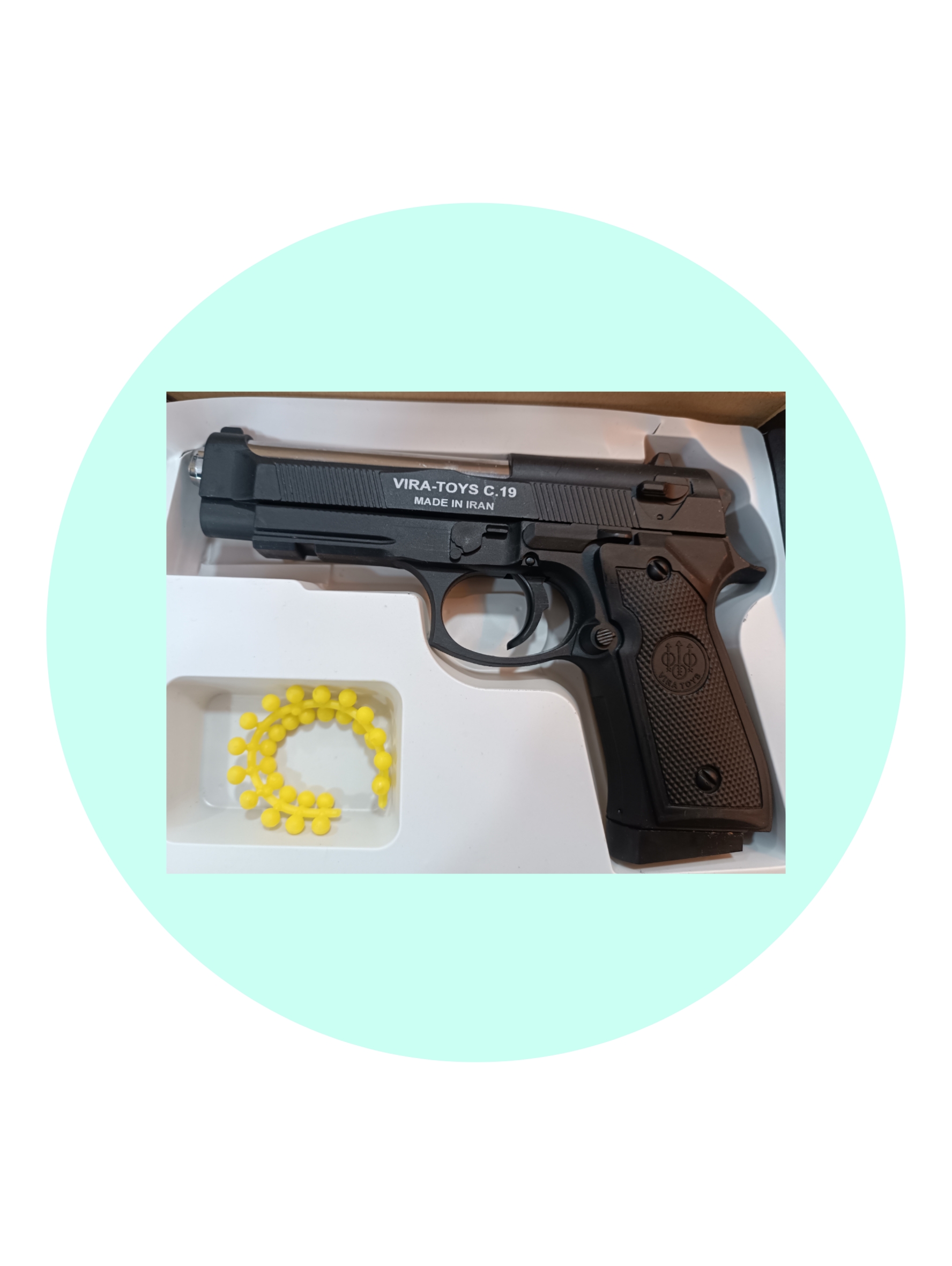 تفنگ ایرانی ویراتویز بدنه از پلاستیک ABS و فلز تیر ساچمه نرم قابل استفاده هست دارای جعبه و مقداری تیر